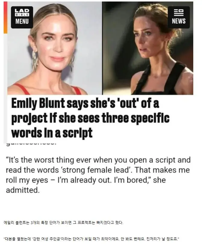 대본에 "강한 여성 주인공" 나오면 거른다는 배우