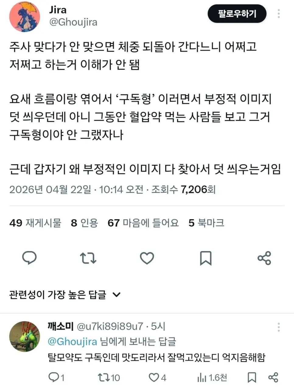 배민리뷰로 몸무게를 공개한 여자