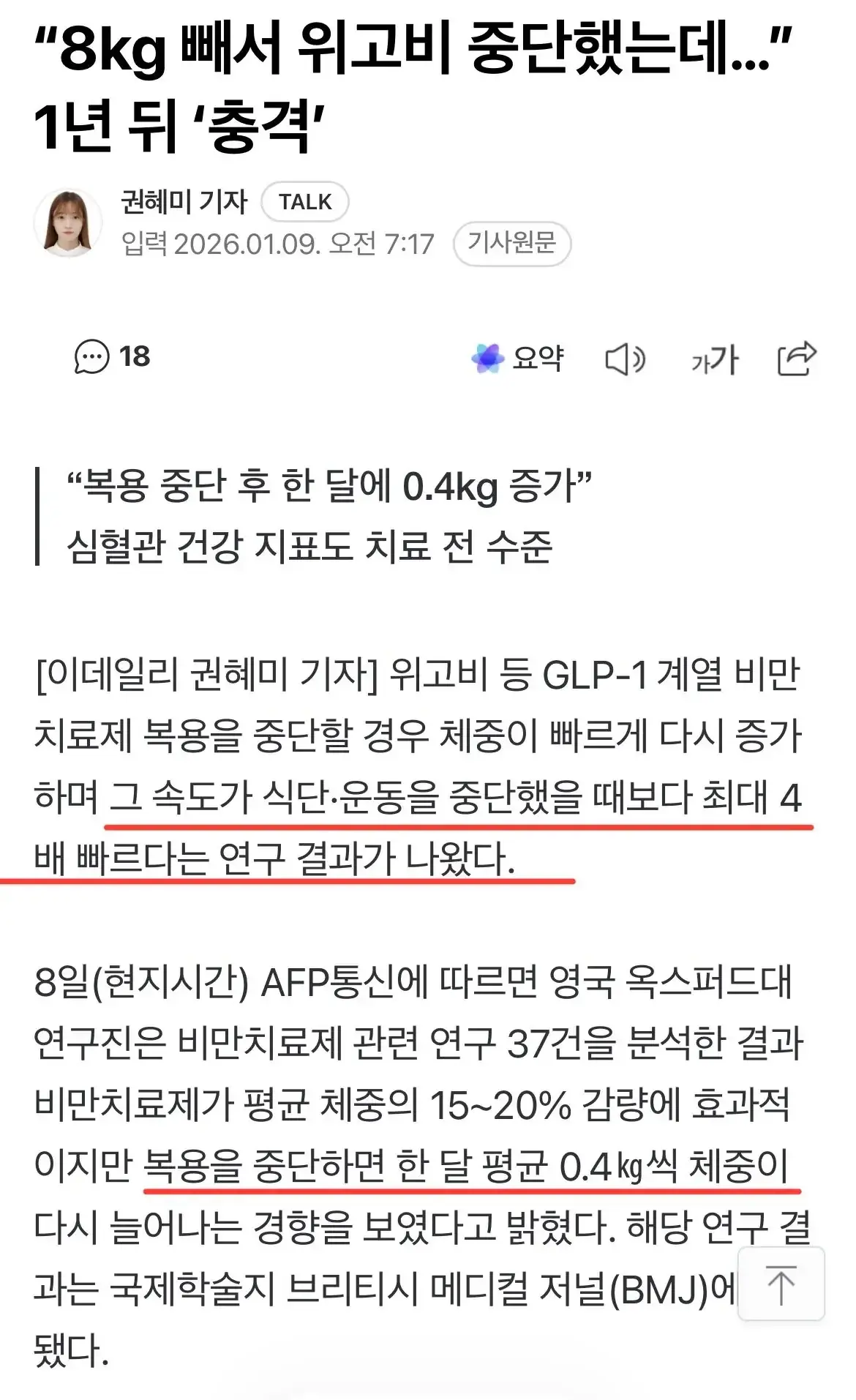 “8kg 빼서 위고비 중단했는데…” 1년 뒤 ‘충격’