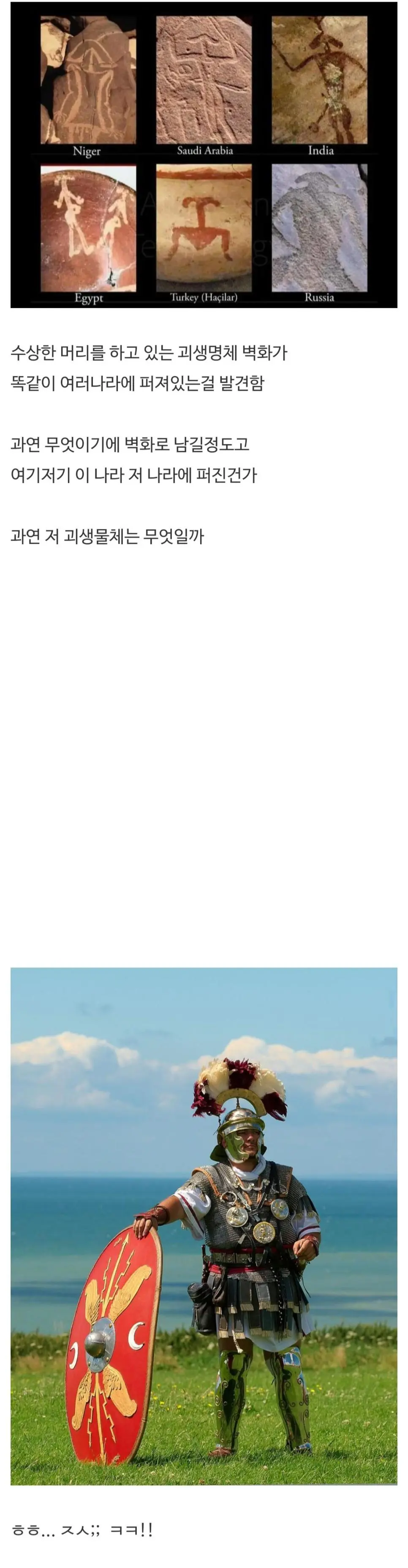 여러나라에서 발견된 고대 괴생물체 벽화