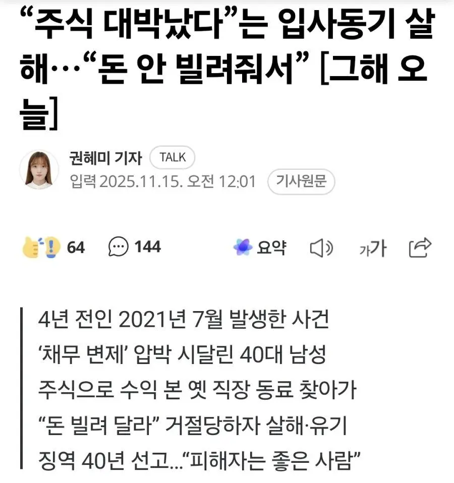 선배 김수용에게 카톡보낸 후배