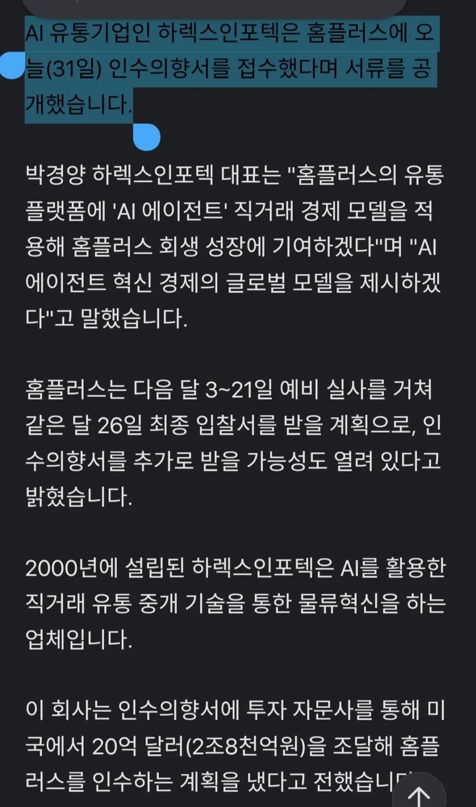속보 홈플러스 입찰 데드라인에 AI 회사가 입찰