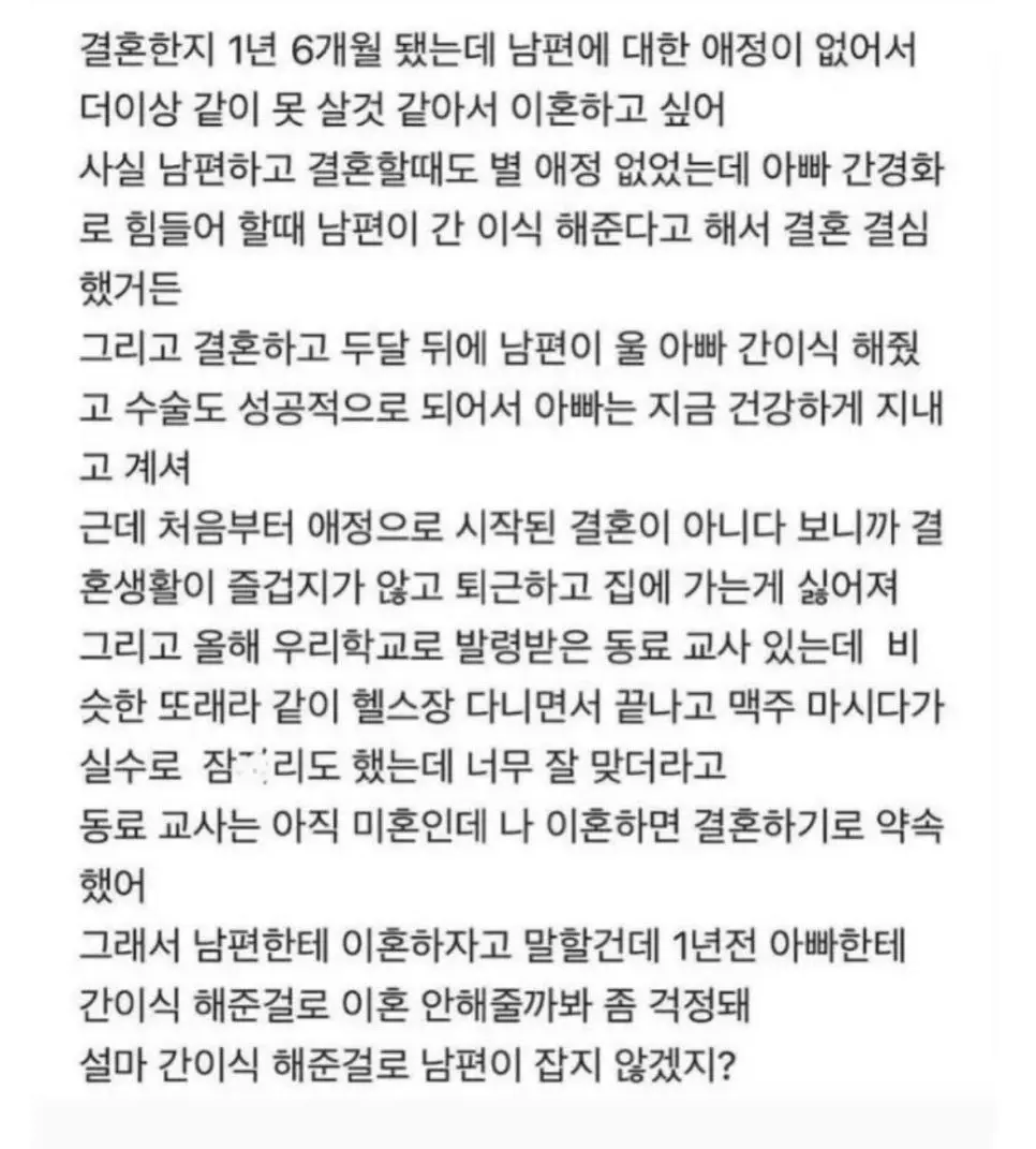 남편간으로 아빠살리고 이혼을 생각하는 여자