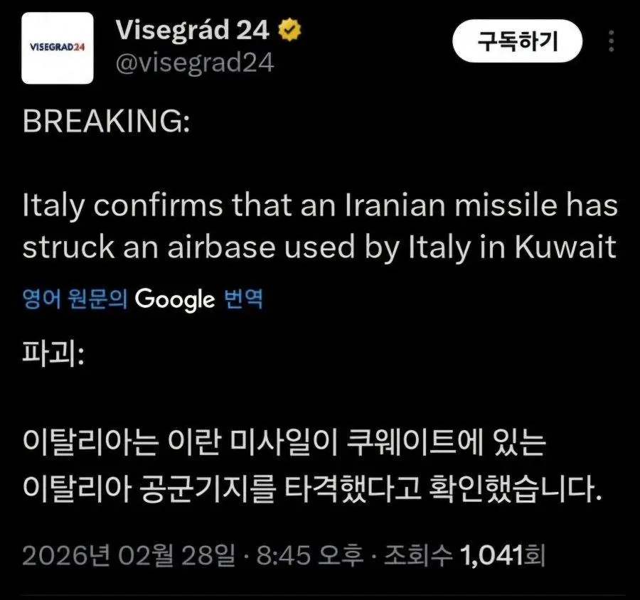 [속보] 이스라엘 "미국 이란 공격 24시간안에 일어날것"