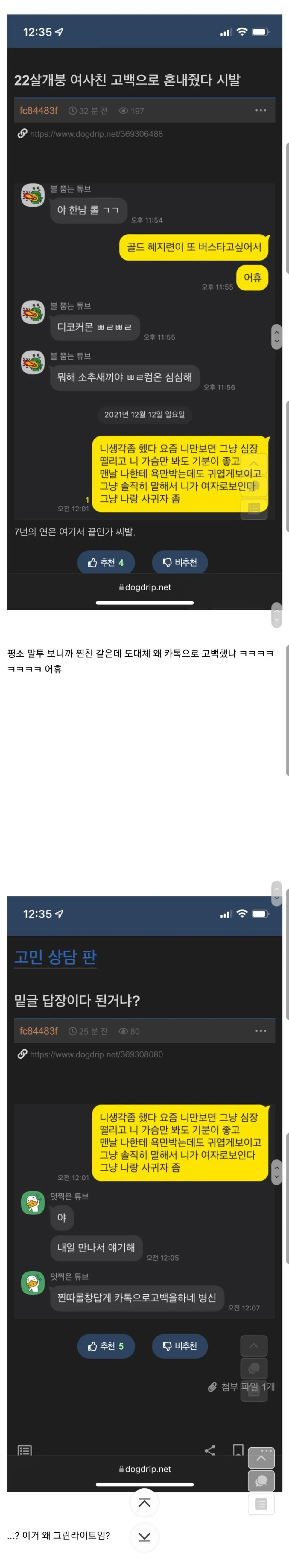 흥미진진 개붕이의 카톡고백 현장