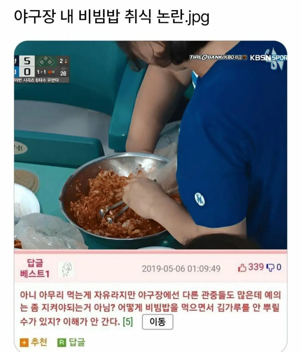 야구장 내 취식 논란