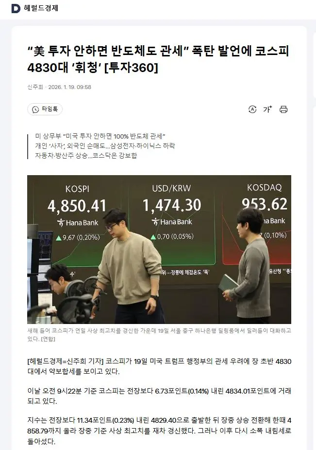 코스피 4830대 ‘휘청'