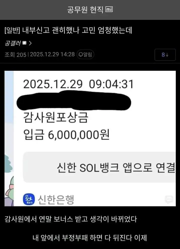 공무원 내부신고 포상금 글을 본 또다른 공무원