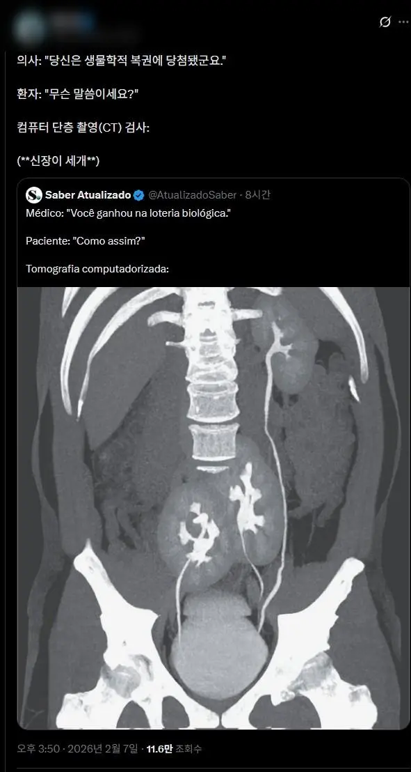 의사: "당신은 생물학적 복권에 당첨됐군요." 환자: "무슨 말씀이세요?"
