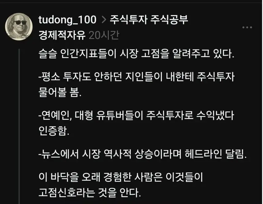 슬슬 인간지표들 주식시장 고점 알려주는 중