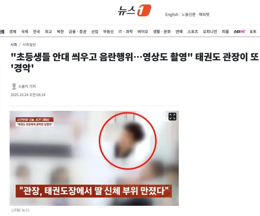 "초등생들 안대 씌우고 음란행위…영상도 촬영" 태권도 관장이 또 '경악'