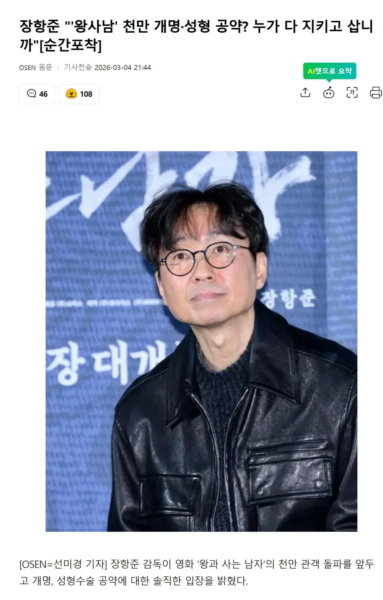 장항준 "'왕사남' 천만 개명성형 공약? 누가 다 지키고 삽니까"