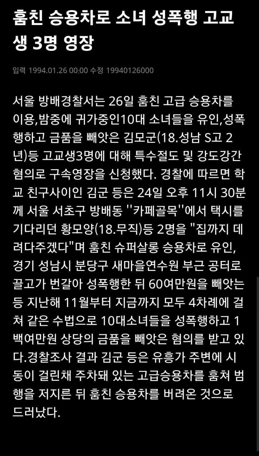 디스패치가 말한 조진웅으로 추정되는 94년 1월 기사