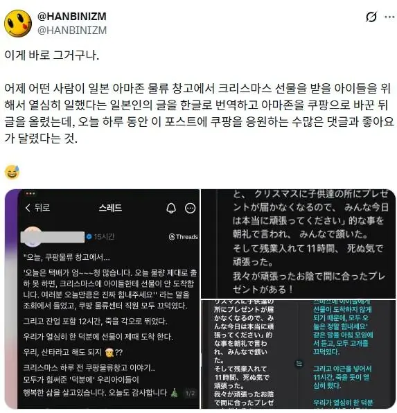 아마존 미담 소식을 쿠팡 미담으로 변조해 퍼트림