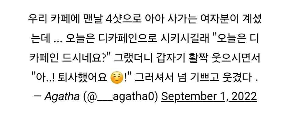 매일 4샷으로 사가던 손님이 디카페인으로 시켰다.