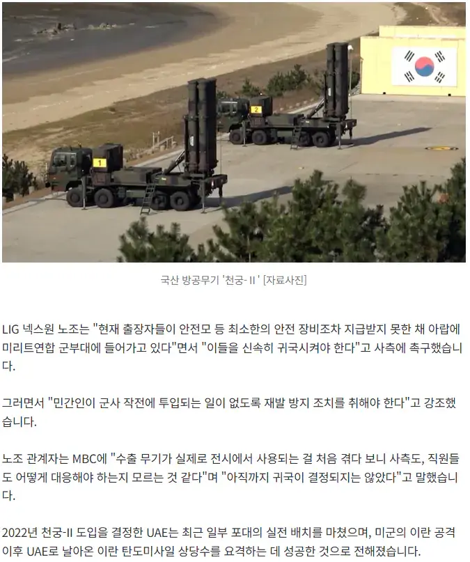 UAE 출장 방산업체 직원들 군사작전 동원 의혹...'천궁' 운용 목적