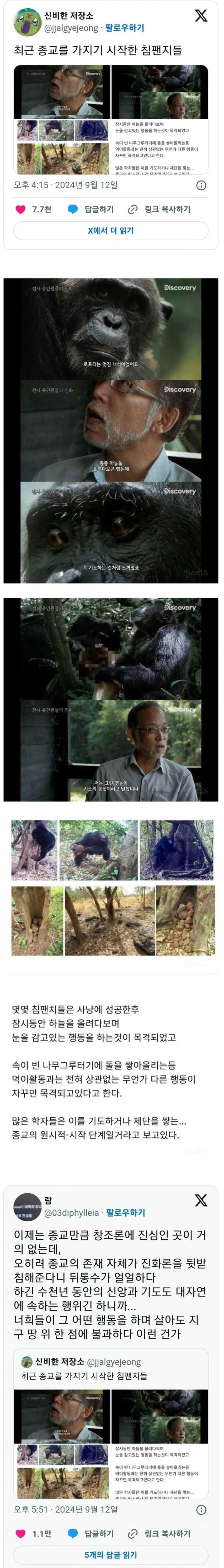 종교를 가지기 시작한 침팬치들.