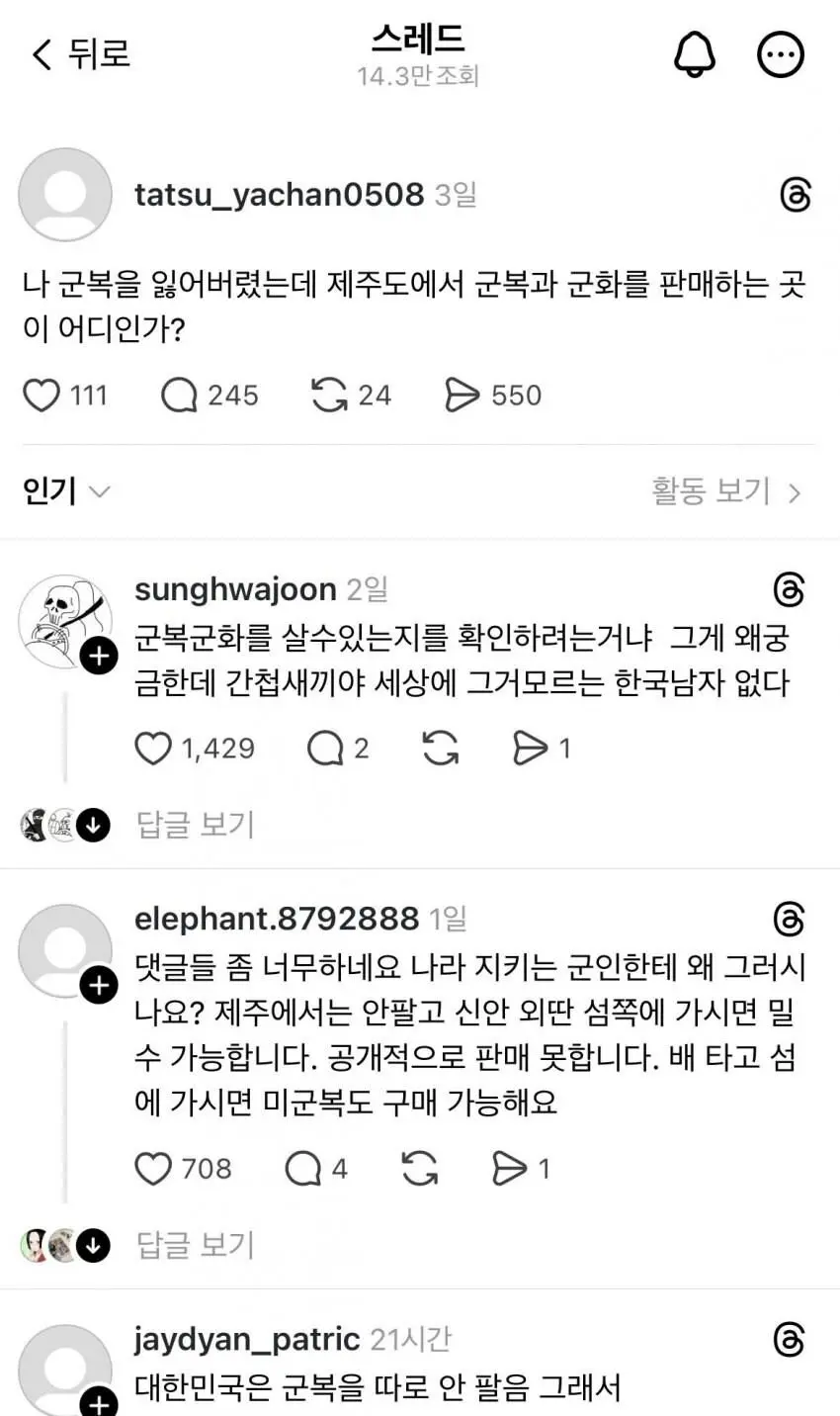 제주도에서 군복과 군화 파는 곳을 찾는 사람...ㄷㄷㄷㄷ