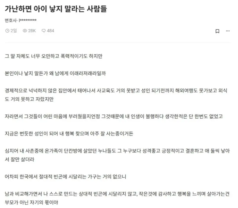 가난하면 아이 낳지 말라는 사람들이 이해 안가는 변호사