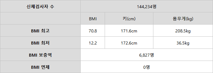 올해 군대 신체검사 놀라운 점