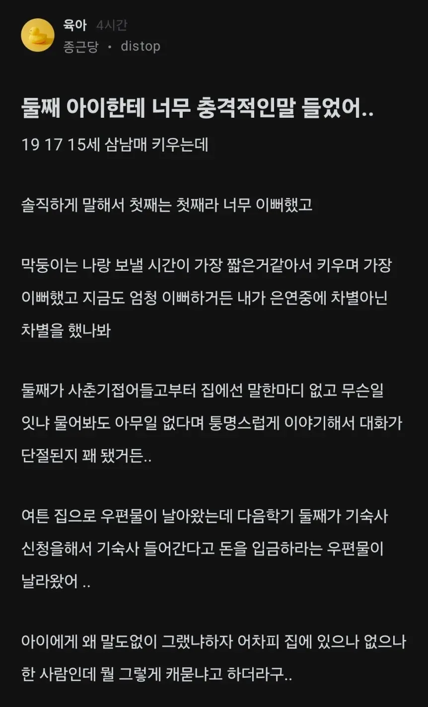 둘째 아이한테 너무 충격적인 말 들었어.blind