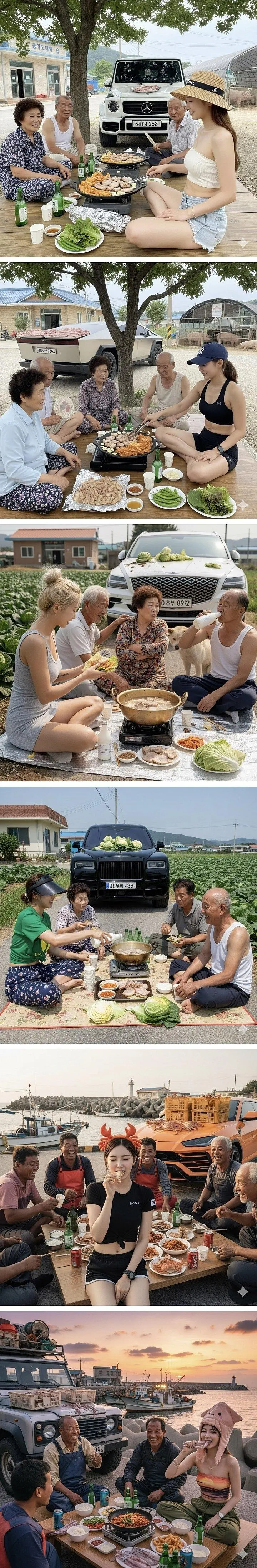 Ai가 그린 어르신들과 새참 먹는 순박한 한국 시골 처녀