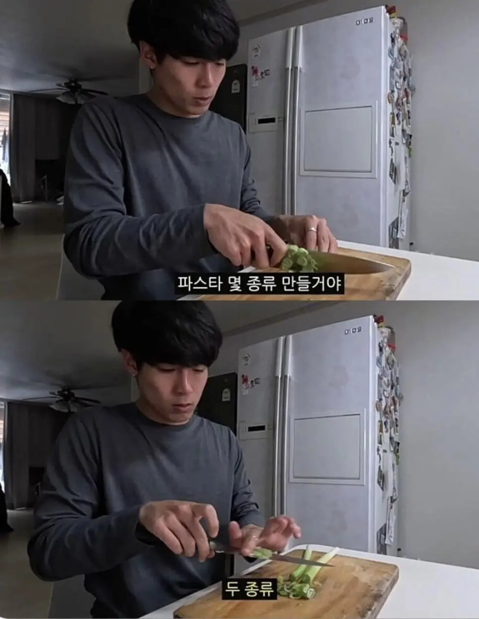 프랑스인 아내를 위해 파스타를 만드는 남편