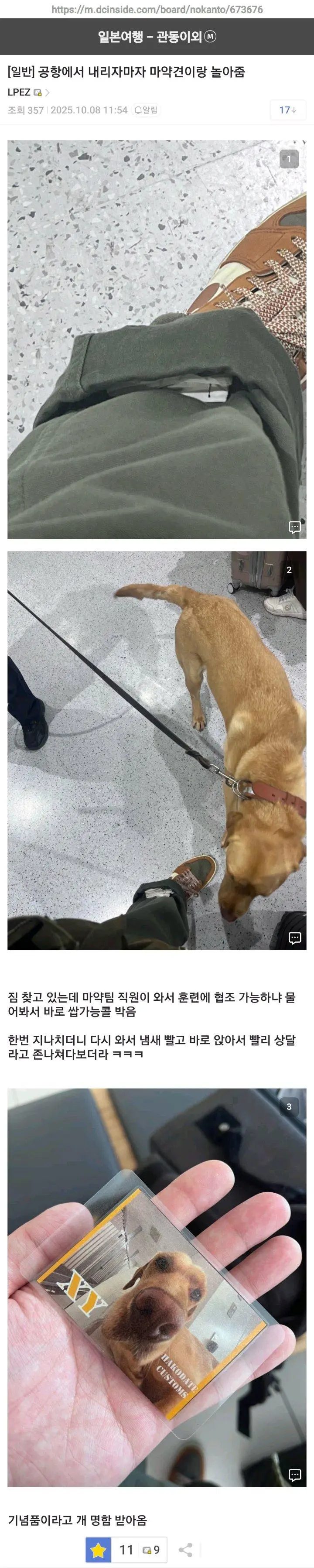 공항에서 마약견 훈련에 협조하면 받는 기념품