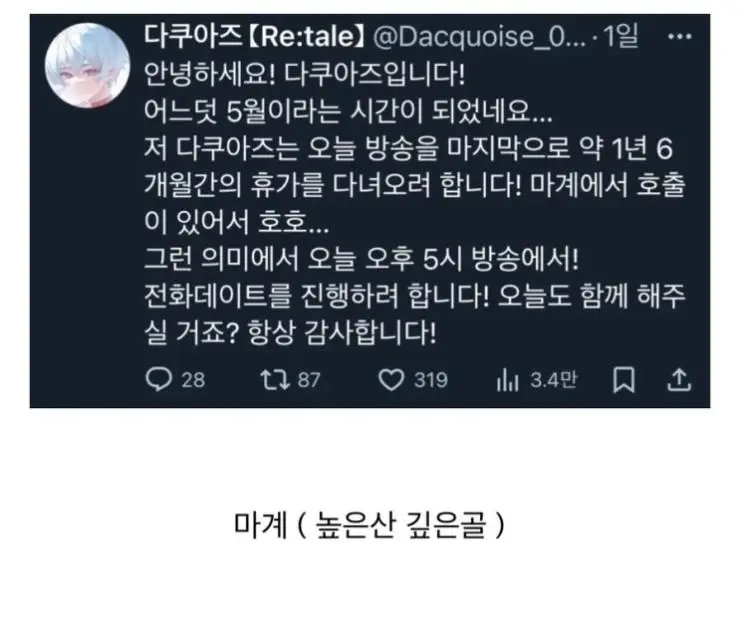 어떤 남성 버튜버가 긴 휴방을 하게 된 이유