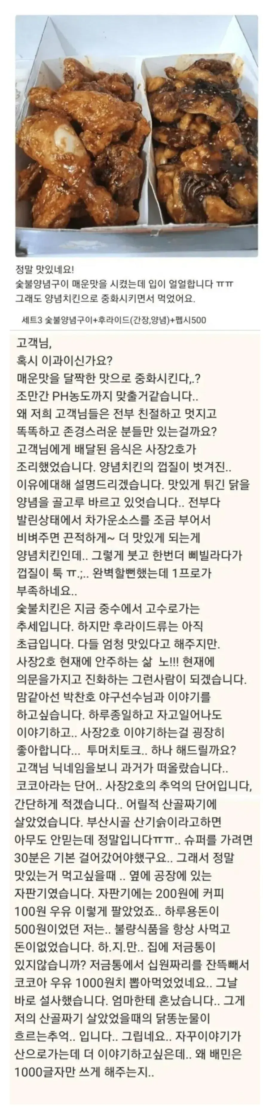 맛있다고 리뷰 달았을 뿐인데 급발진 당한 손님 (부제:찬호박치킨)