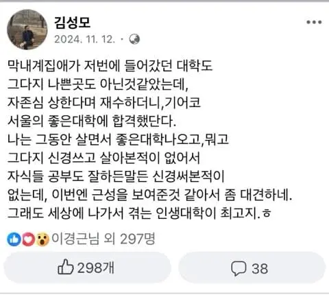 인서울 대학에 합격한 만화가 김성모 막내딸
