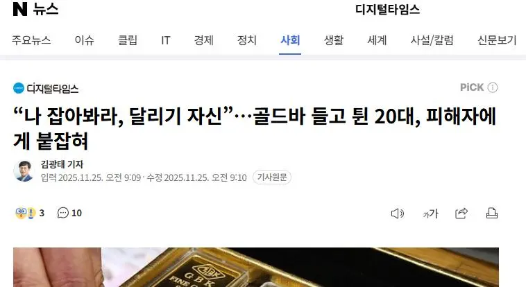 “나 잡아봐라, 달리기 자신”…골드바 들고 튄 20대