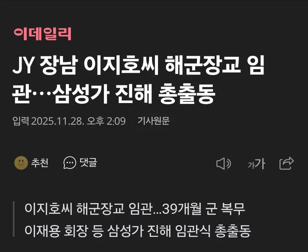 이지호, 해군 소위 임관.. 이재용 참관, 삼성가 첫 장교배출
