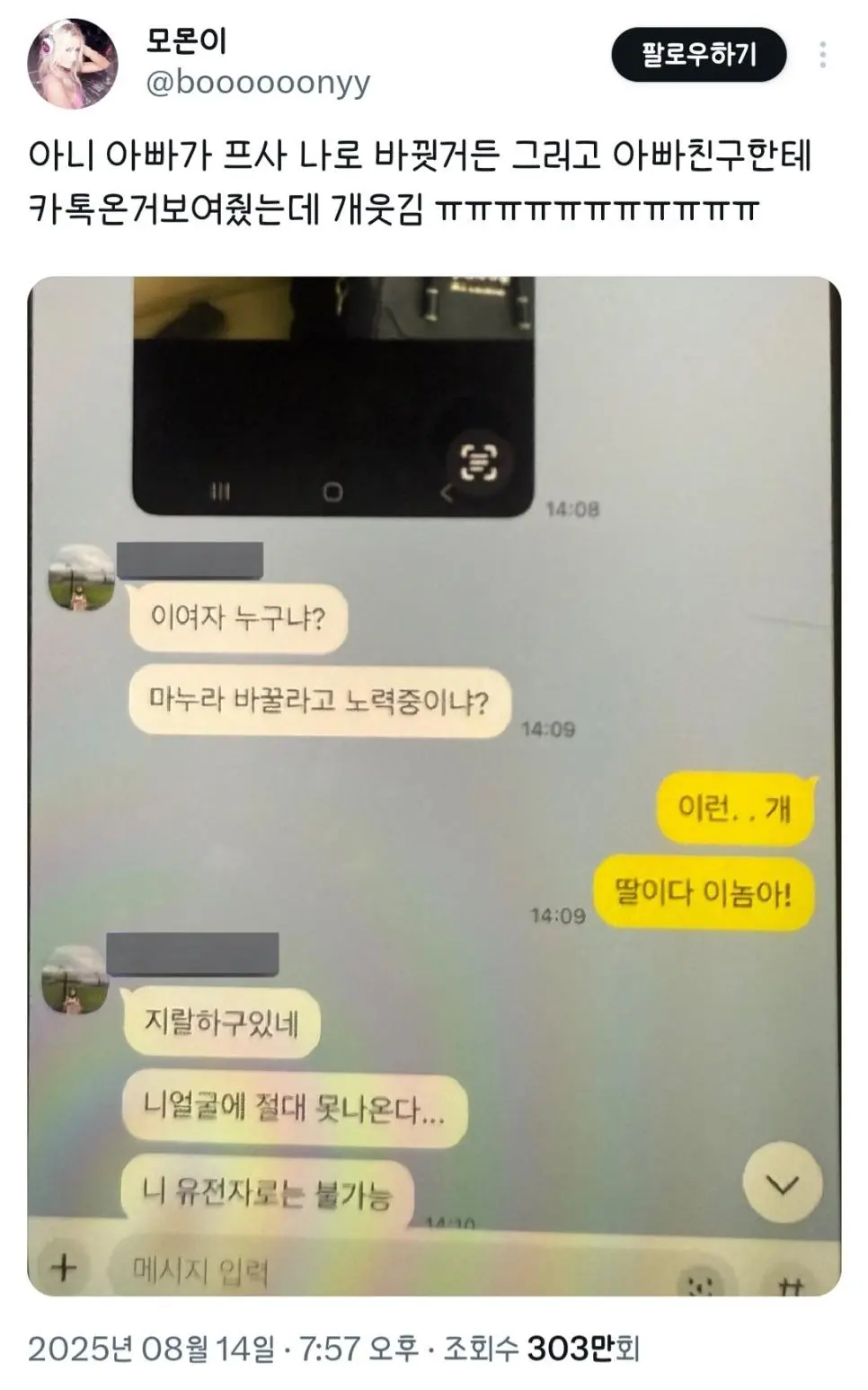 아빠가 카톡 프사를 바꿨더니