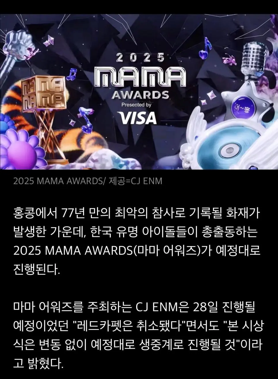 홍콩 대형 화재사고 나고 열린 MAMA 현지인들 반응