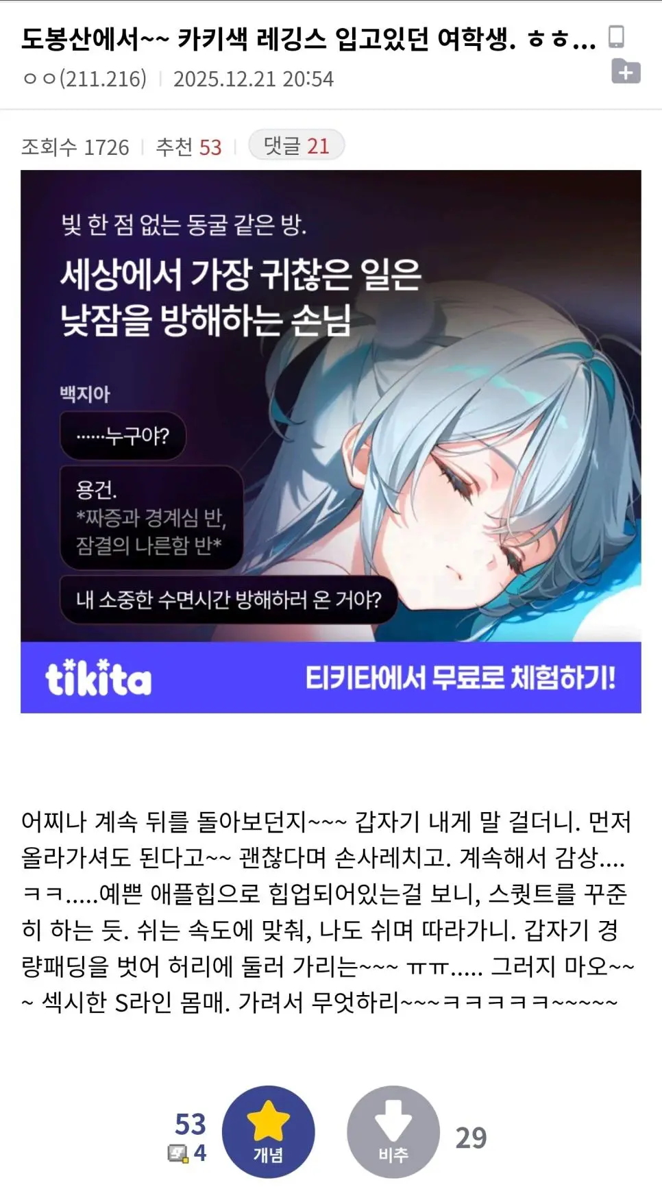 도봉산에서~~ 카키색 레깅스 입고있던 여학생. ㅎㅎ...