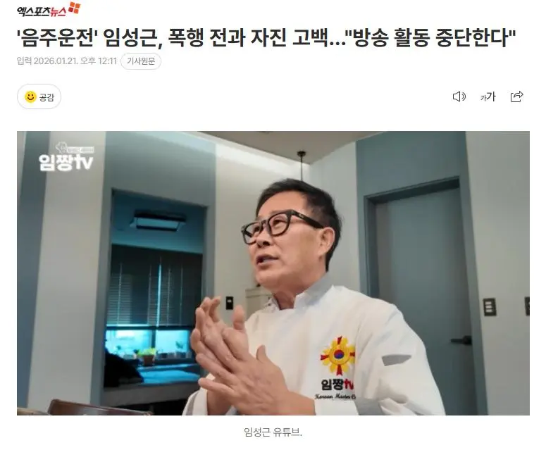 '음주운전' 임성근, 폭행 전과 자진 고백…"방송 활동 중단한다"