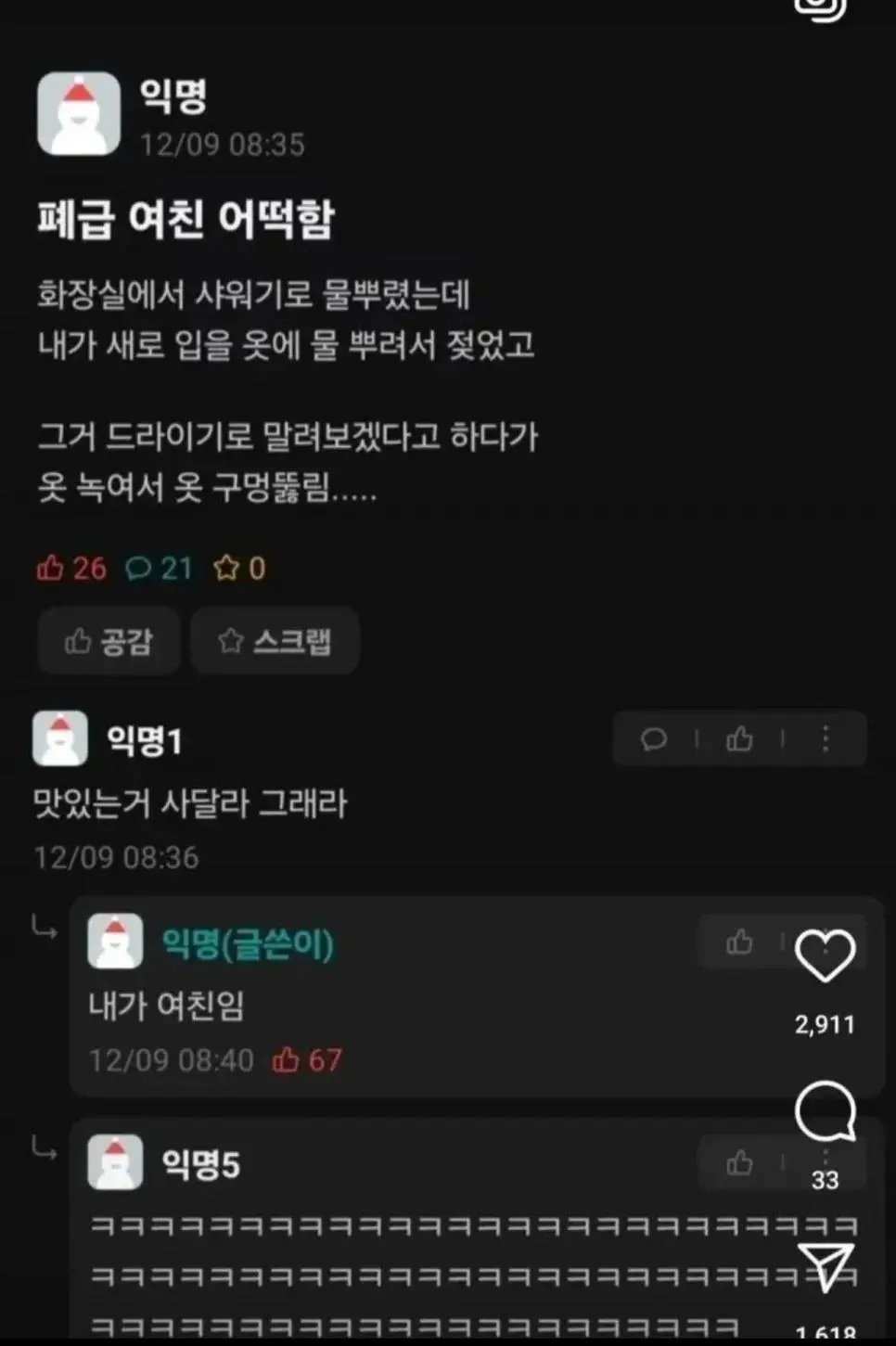 여성 스트리머 크리스마스 방송 중 도네 레전드
