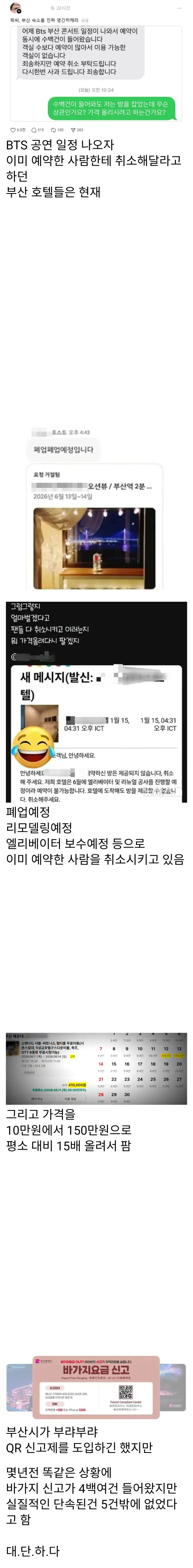 BTS 공연으로 취소요청하던 부산 숙소들 근황
