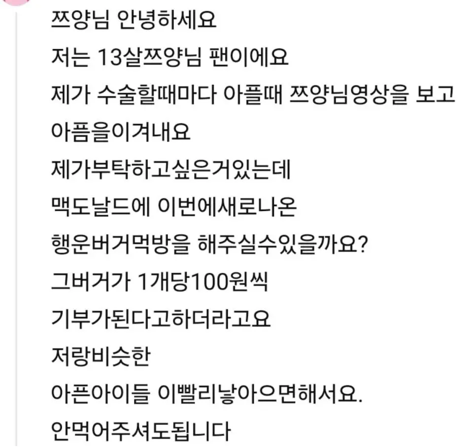 쯔양이 유튜브 댓글을 보고 한 행동