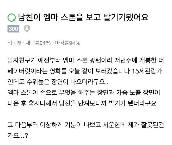 남친이 엠마 스톤을 보고 발기가 됐어요