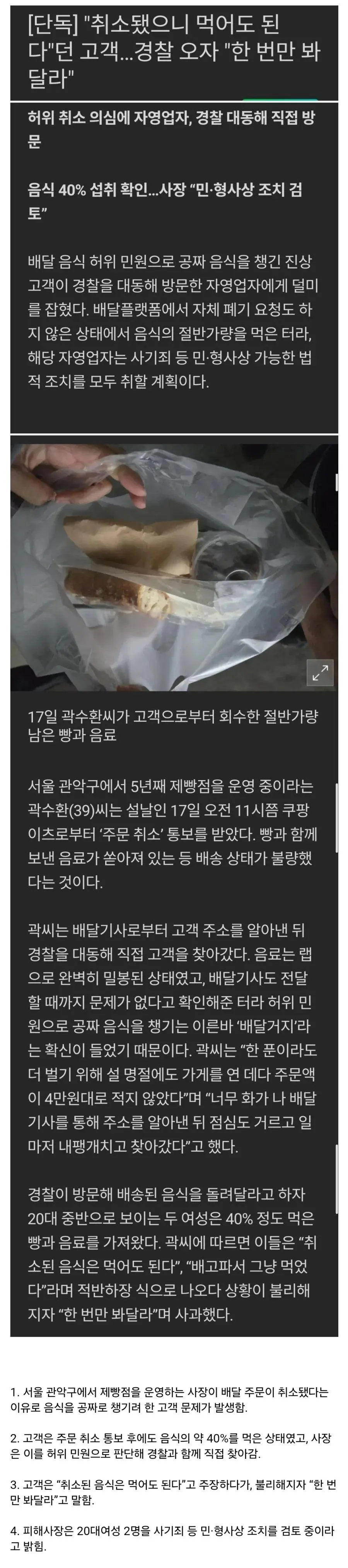"취소됐으니 먹어도 된다"던 고객경찰 오자 "한 번만 봐달라"