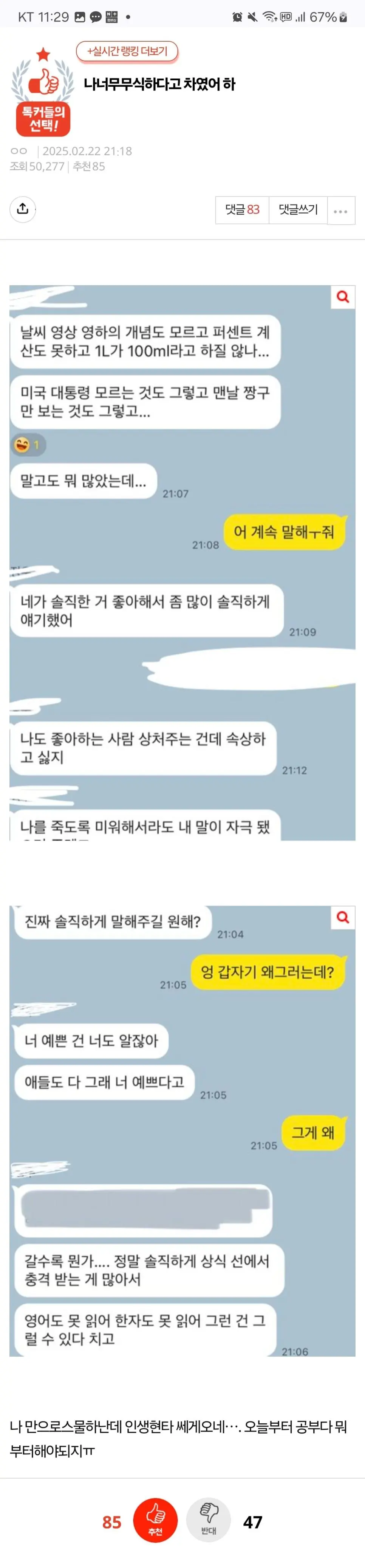 무식하다고 차인 판녀