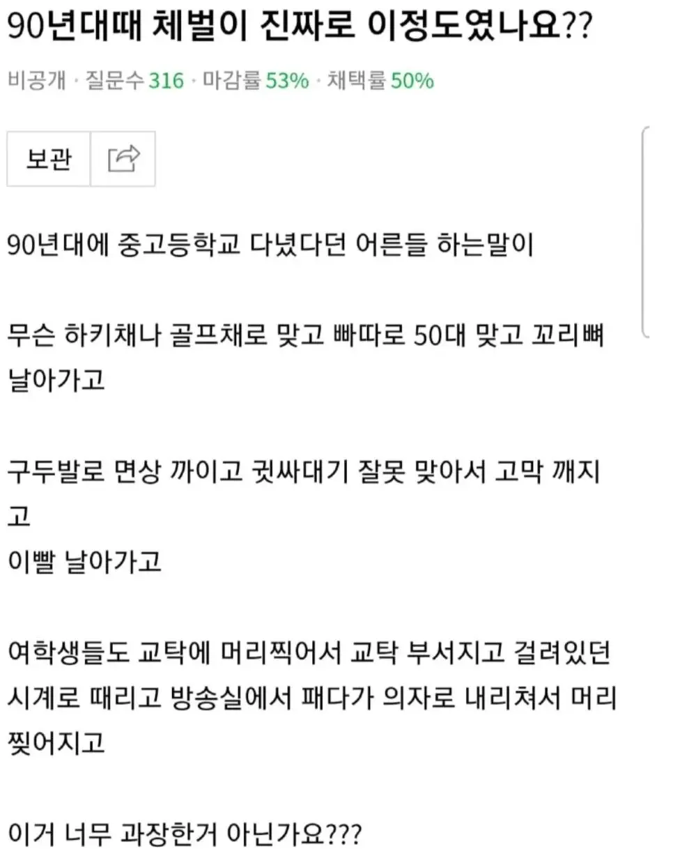 90년대 체벌이 진짜 이정도였나요? 과장 아닌가요?