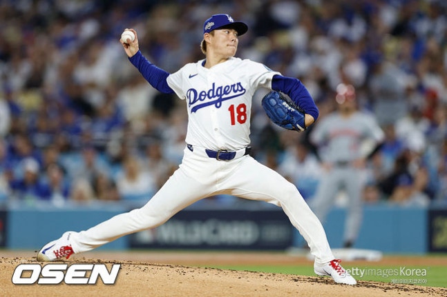 사사키는 메이저리그 포스트시즌 데뷔전을 맞아 최고 101.4마일(163km) 강속구를 뿌리며 다저스의 불펜 고민을 덜었다.