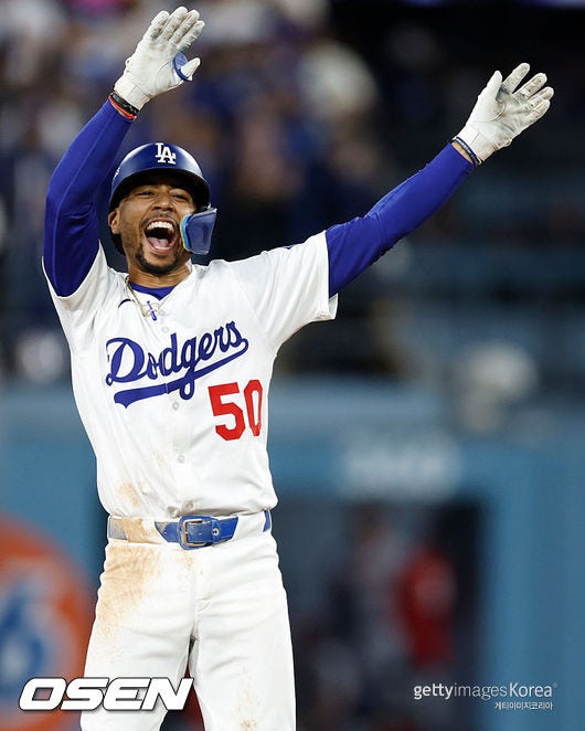 위기 뒤 찬스였다. 다저스는 6회말 선두타자 키키 에르난데스의 내야안타, 1루수 송구 실책으로 1사 1, 3루 기회를 맞이했다. 이어 오타니가 1타점 우전 적시타, 베츠가 1타점 2루타를 연달아 날렸고, 프리먼의 고의4구로 이어진 1사 만루에서 테오스카 에르난데스가 2타점 쐐기 2루타를 치며 앞서 실책을 만회했다.