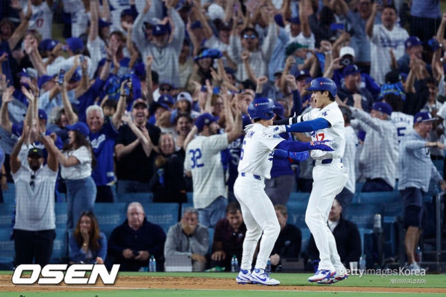 2사 만루에서 파헤스가 친 타구는 투수 정면 땅볼 타구, 투수가 한 번 더듬고 다시 잡아서 1루가 아닌 홈으로 송구했는데, 악송구가 됐다. 김혜성이 끝내기 결승 득점을 올렸다. 다저스가 3승 1패로 챔피언십시리즈에 진출했다. 다저스 선수들이 더그아웃에서 뛰어나와 환호하며 승리 기쁨을 즐겼다. 오타니가 가장 먼저 김혜성과 포옹하며 기뻐했다.