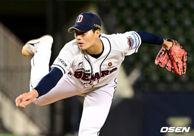 [OSEN=잠실, 최규한 기자] 6일 서울 잠실야구장에서 ‘2022 신한은행 SOL KBO리그’ 두산 베어스와 삼성 라이온즈의 경기가 열렸다. 7회초 마운드에 오른 두산 투수 이승진이 힘차게 공을 뿌리고 있다. 2022.10.06