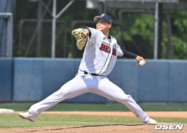 [OSEN=이천, 박준형 기자] 21일 오후 이천 두산베어스파크에서 2024 퓨처스리그 두산 베어스와 고양 히어로즈의 경기가 진행됐다.이날 두산은 정철원을, 고양은 전준표를 선발투수로 내세웠다. 6회초 두산 남호 투수가 역투하고 있다.