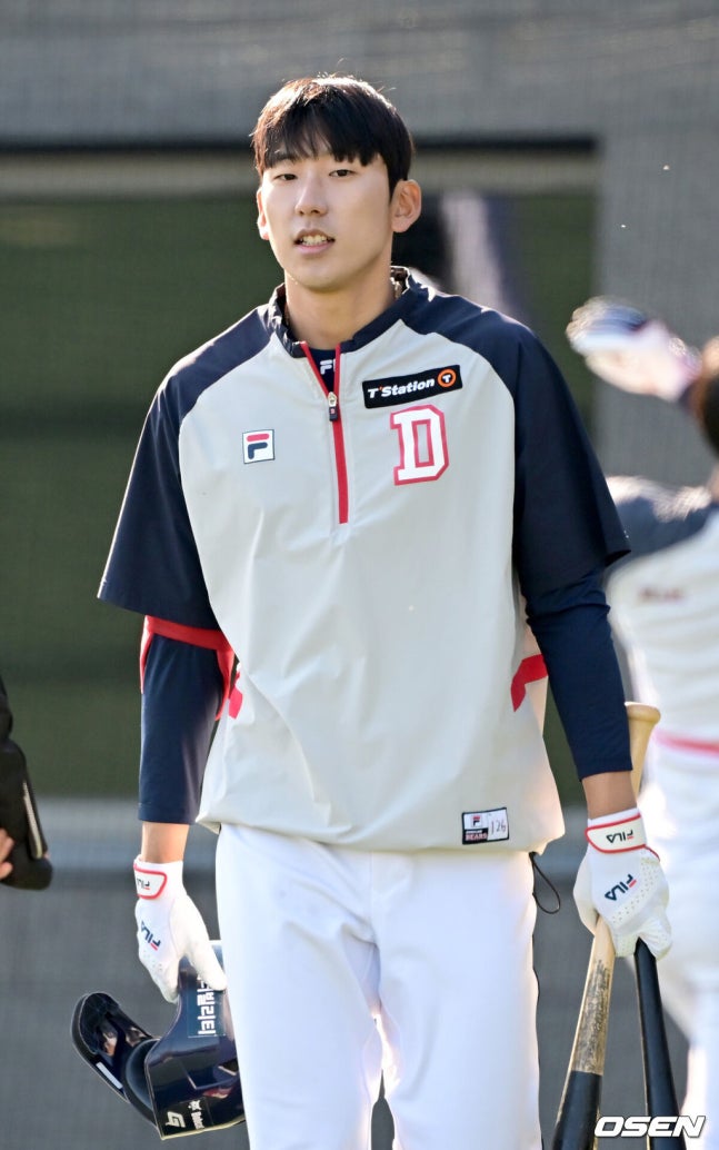 [OSEN=이천, 김성락 기자] 6일 오후 경기 이천시 두산베어스파크에서 프로야구 구단 두산베어스의 마무리 캠프 훈련이 진행됐다. 두산 강동형이 훈련을 위해 그라운드로 나서고 있다.